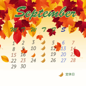 9月の休日のお知らせ